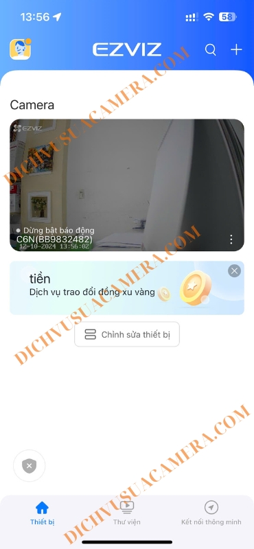 - Sau khi đăng nhập, màn hình chính của ứng dụng sẽ hiển thị danh sách các camera Ezviz đã được kết nối với tài khoản của bạn.