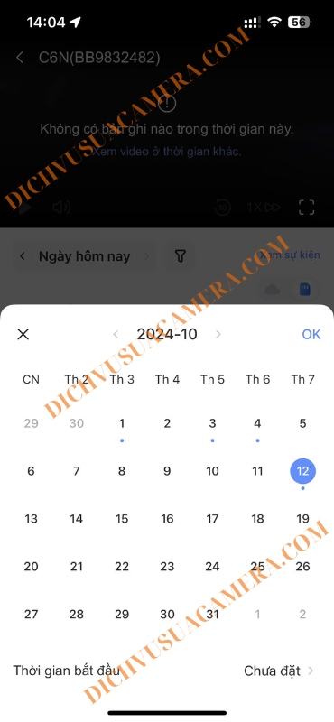 - Tại giao diện xem lại, bạn có thể chọn ngày và thời gian cụ thể mà bạn muốn xem video đã ghi hình.