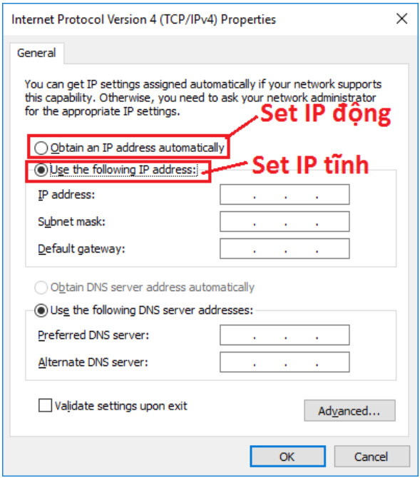 - Nhập các thông số IP tĩnh: