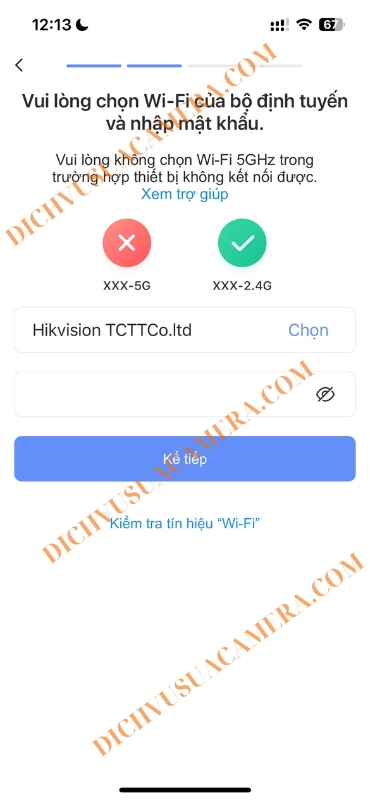 - Hãy chọn mạng Wi-Fi 2.4GHz (vì phần lớn camera Ezviz không hỗ trợ băng tần 5GHz).