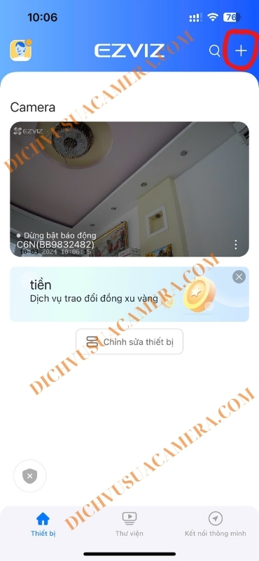 - Bước 3: Thêm thiết bị Camera Ezviz vào ứng dụng