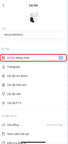 - Vào phần Cài đặt (Settings) và tìm mục Nhận diện thông minh (Smart Detection) hoặc tương tự.