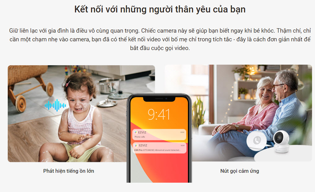 - Thông báo ngay lập tức: Bạn sẽ nhận được thông báo đẩy đến điện thoại qua ứng dụng Ezviz, giúp bạn kịp thời kiểm tra tình hình.