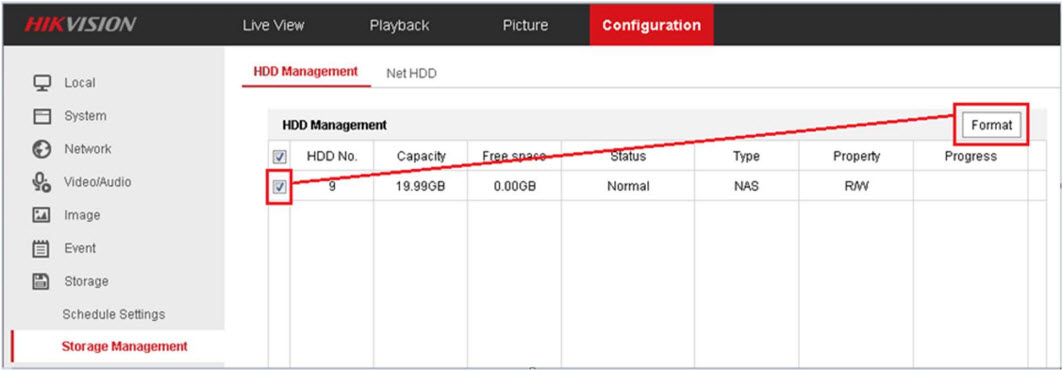 - Vào mục Configuration> Advanced configuration> Storage> Storage management, và định dạng lại thẻ nhớ.